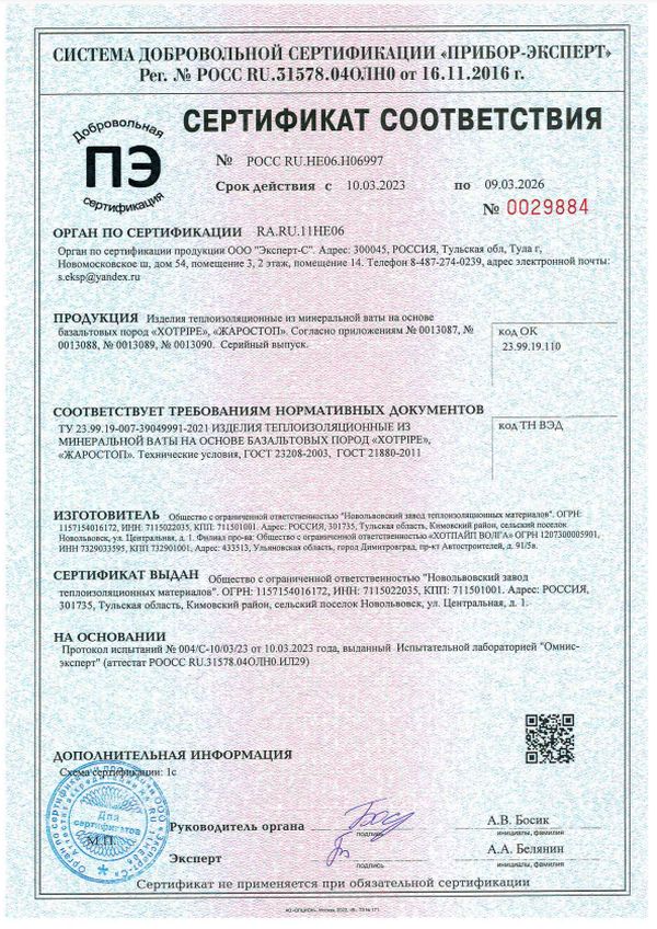 Теплопроводность, Вт/(м*°C) 0,034 - 0,234